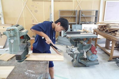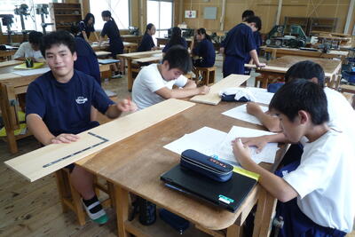 唐辛子の実を収穫中。担任及び技術科教諭の指導の下、丁寧に作業を進めます。