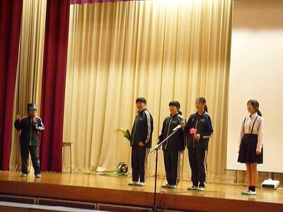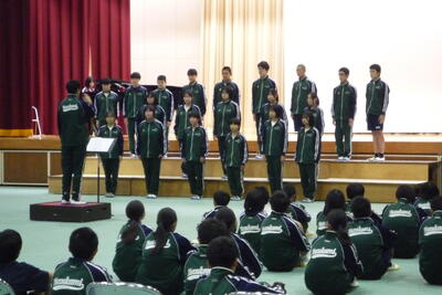 そして、各学年代表の発表です。前期を振り返り、後期の目標をしっかり述べていました。