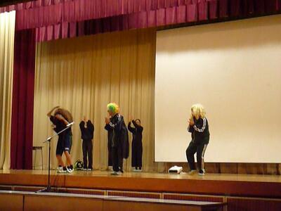 午後は、湯中生が、学年発表のリハーサルをしました。