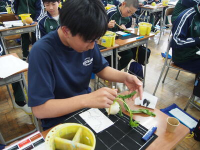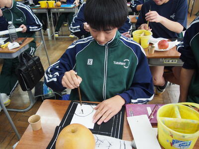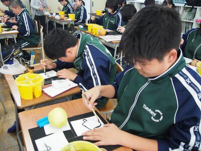 11/4(火)総合的な学習の時間に、2年生は絵手紙に挑戦しました。