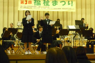 3名がボランティアとして参加。開会式やステージ発表の司会進行、表彰の介添えなど文化祭のスムーズな進行に一役買いました。