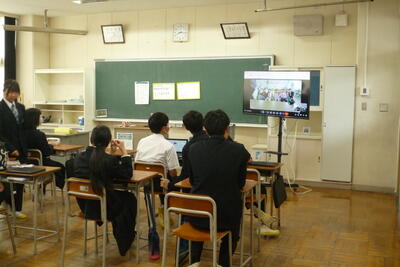本日、小中一貫あいさつ運動を実施しました。今回は、感染症等拡大防止を考慮し、リモートでの朝の会交流としました。