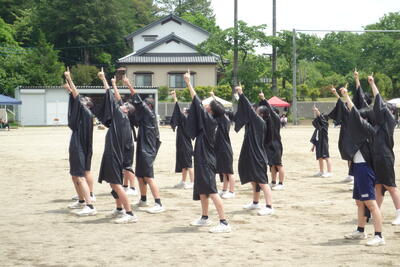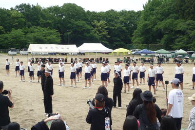 最後に、吹奏楽部の演奏で『アフリカンシンフォニー』を歌い、円陣を組んで、それぞれの活躍を祈願しました。