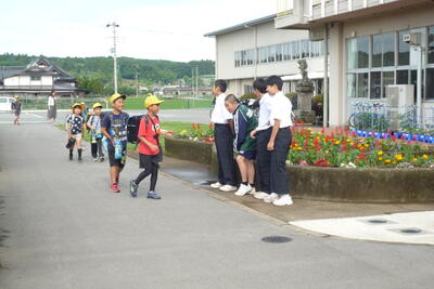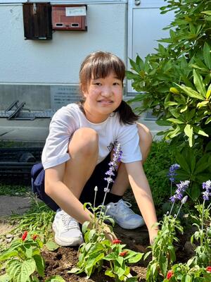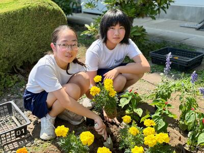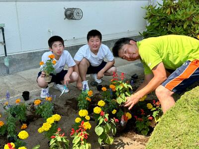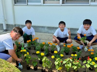 毎朝、花の水やりも忘れずにしてくれる1年生。皆さんの愛あふれるお世話に、花壇の花も暑さに負けずきれいに咲いています。