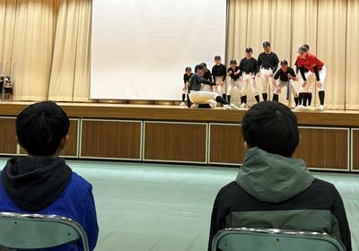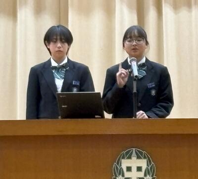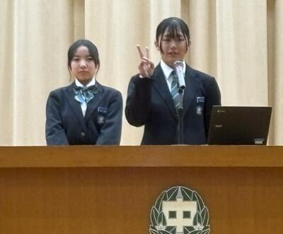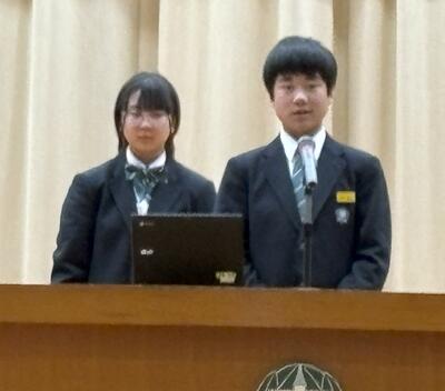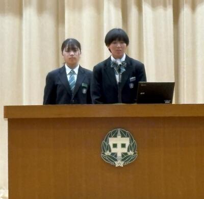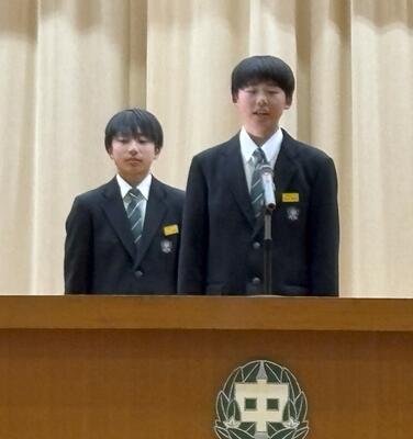始業式のあとには、学年代表の発表がありました。二人とも、進級の喜びや目標、学年に応じた責務などを、自分の言葉で堂々と話しました。