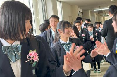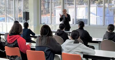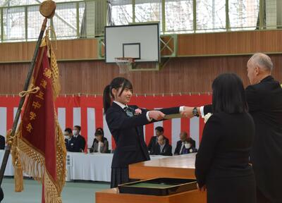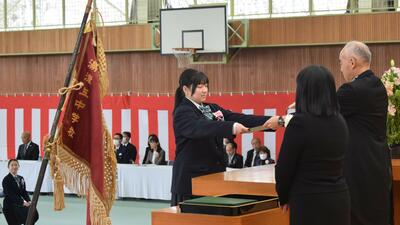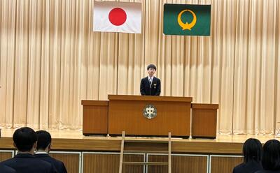 校長先生からは、今年度1年間を振り返り、生徒たちの大きな成長を確認するととともに、来年度に向けて期待の言葉をいただきました。真剣に話を聞く生徒たちの目が印象的でした。