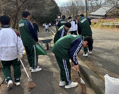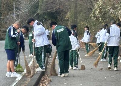 佐良土方面からの「あすなろ坂」、蛭田方面からの「新あかね坂」、湯津上方面からの「松の木坂」という学校周辺の3つの坂を地区ごとに分かれて、落ち葉を掃いたり、ごみを拾ったりして、生徒全員できれいにしました。「毎日通う坂がきれいになり、気持ちよかったです。明日からまた頑張って坂をのぼって来る元気が湧いてきました。」という感想を述べている生徒もおり、大成功でした。