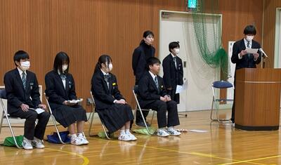 修了式の後は各学年代表の生徒による意見発表がありました。それぞれ、今年度の反省と来年度に向けた決意が語られました。湯津上中学校の更なる躍進を期待させる発表でした。