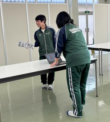 来年度の前期生徒会役員を決めるための選挙に先立ち、本日、会長・副会長立候補者とその責任者による立会演説会が行われました。会長に2名、副会長に4名が立候補しました。それぞれが湯津上中学校の未来のためにできることを精一杯考え、その熱い思いを語りました。
