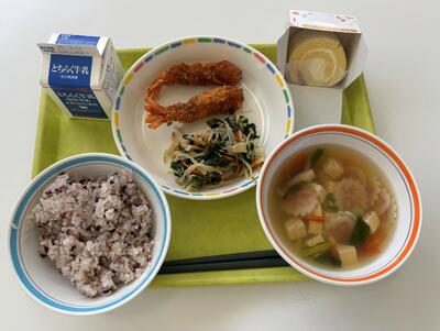 本日の給食は、大田原市制70周年を記念した「与一くんランチ」として、地元の食材を多く使った和食メニューでした。湯津上地区の平野精一さんが作った古代米も提供され、とてもおいしくいただきました。