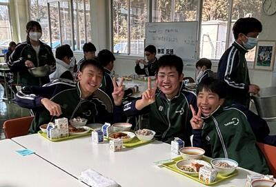 待ちに待った給食が再開しました。久しぶりの給食に、全校生徒(教職員も)のテンションが上がりました。