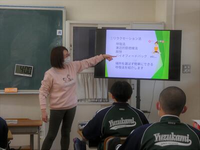 ストレスへの対処法として呼吸法を教わった3年生。なにかとストレスを感じるこの時期、「あぁ つらい・・・」と感じたら、こっそり呼吸法を試してリラックスしてくださいね。ちなみに、3月には1、2年生も講座を受ける予定です💖