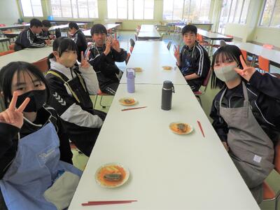 2年生調理実習 投稿: 校長 (08:12) 2年生は、魚料理に挑戦しました。 2年生はとても手際が良いと、サポートに入っている先生や写真を撮っていた先生方が言っていました。 皆で協力して、美味しく作ることができました。家でも是非作ってくださいね。 Tweet -