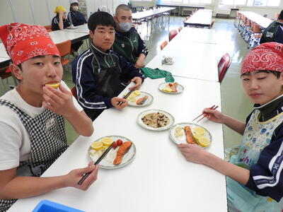 2年生調理実習 ブログ 08:12 パブリック 校長 2年生は、魚料理に挑戦しました。 2年生はとても手際が良いと、サポートに入っている先生や写真を撮っていた先生方が言っていました。 皆で協力して、美味しく作ることができました。家でも是非作ってくださいね。
