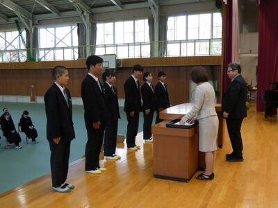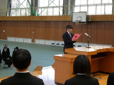 令和8年度のスタート!(新任式&始業式) ブログ 17:47 パブリック 校長 ~新任式・始業式の様子~新たに着任された9名の先生方の自己紹介。 担当教科や部活動だけでなく、湯中に着任した感想なども交えて楽しいお話が聞けました。生徒代表による「歓迎の言葉」 学校生活の様子やあたたかな歓迎の気持ちがとてもよく伝わりました!始業式後の生徒意見発表。今年度への期待や決意が感じられました。 生徒会役員認証式 活発な活動を楽しみに!