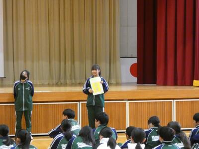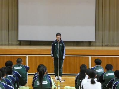 体育祭実行委員長さんあいさつならびにスローガン発表
