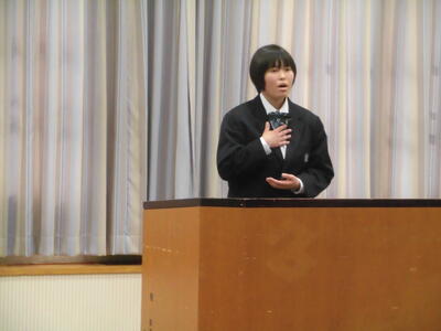 原稿作りからスピーチの練習まで、2人とも熱心に取り組みました。前日に、職員室で披露してくれましたが、柔らかい雰囲気と語り口調がとても素晴らしかったです。