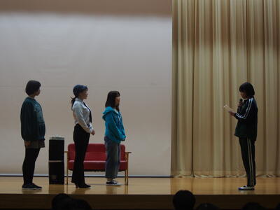 薬物乱用防止教室 投稿: 校長 (18:52) 劇団三十六計をお招きして、薬物乱用防止教室を開催しました。 啓発演劇は、中学生にとってとても身近な話題で、最後まで集中して観ることが出来ました。 薬物の誘いを断れるか?というお誘いにも「断ります!」と答えていました。 Tweet -