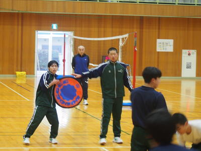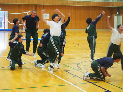 YAZU CUP②🏆 ブログ 12/26 パブリック 校長 バドミントンの次は「ボッチャ」で対戦! ボッチャは、9月の親子レクリエーションでも対戦しました。今回は、ルールをしっかり把握して練習に練習を重ねて本番を迎えたのです。 ウインドブレーカーを着込むくらい寒い日でしたが・・・ 謎の集団 登場! 体育館が一気に『夏🌞』に。 ボッチャの楽しさを知った湯中生でした。
