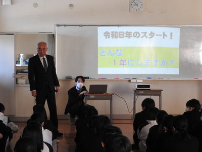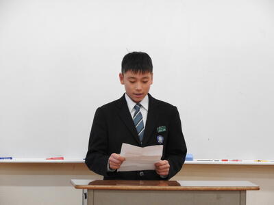 2025年を振り返り、部活動の目標や学習目標、進路について等、代表にふさわしい素晴らしい目標や思いを発表してくれました。