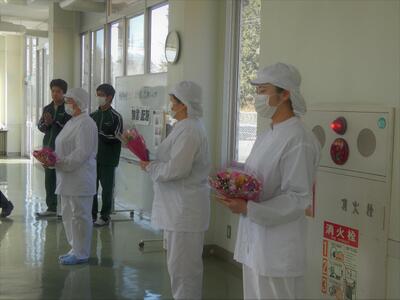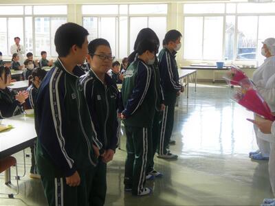 🍝給食感謝の会🍛 ブログ 12:00 パブリック 校長 1月27日(火)給食終了後に『感謝の会』が行われました。 いつも美味しい給食を作ってくださる調理員さん達に、一人一人が心を込めて書いた感謝の手紙と花束をプレゼントしました。これからも、美味しい給食をお願いします!